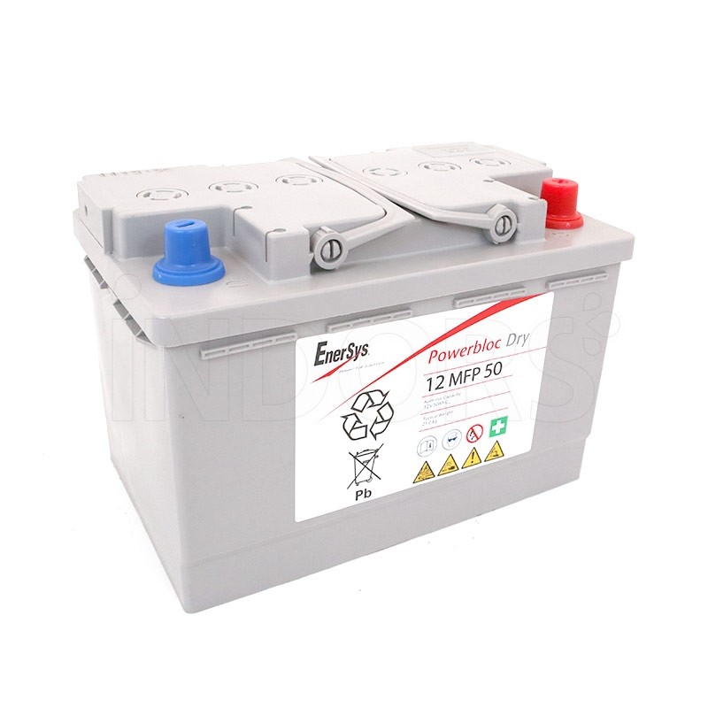 La batterie EnerSys 12 MFP 50 fait partie de la série Powerbloc Dry MFP, une série de batteries totalement sans entretien grâce à l'électrolyte immobilisé à l'intérieur d'un gel spécial.