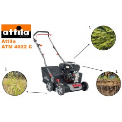 Scarificateur à essence, Attila ATM 4022 C est doté d'un moteur 4 temps de 212 cm3 qui fournit la poussée nécessaire pour s'attaquer aux travaux de scarification et d'aération avec facilité et efficacité.