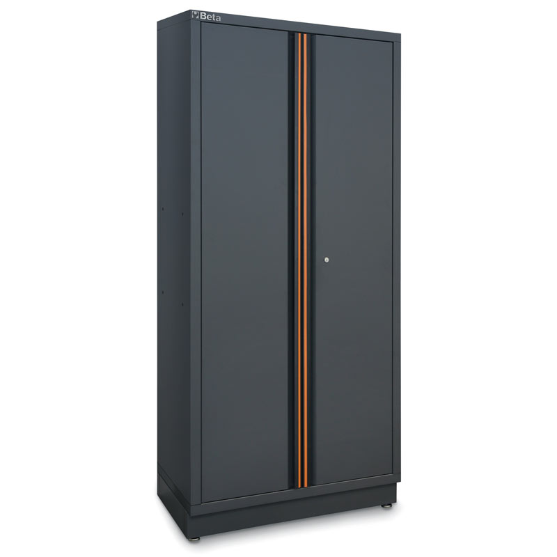 L' armoire à deux portes et les supports muraux (larges et étroits) complètent la structure, offrant des solutions supplémentaires pour le stockage d'équipements volumineux ou de consommables. La modularité du système permet d'adapter l'agencement aux besoins opérationnels spécifiques de chaque atelier.