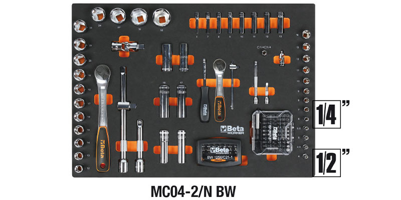Le kit comprend un ensemble d'outils Beta Worker de 196 pièces, couvrant un large éventail de tâches mécaniques et de maintenance. Les outils peuvent être rangés de manière ergonomique dans les tiroirs du module fixe , garantissant une disponibilité immédiate et un ordre constant dans la zone de travail.