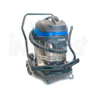 Il est équipé d'un chariot robuste avec 2 grandes roues arrière et 2 roues avant pivotantes qui en plus de permettre le mouvement simple de l'aspirateur, dispose d'une série de boîtiers pour divers accessoires, d' un crochet de câble électrique et d'une poignée métallique résistante.