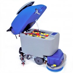Equipé de 2 brosses cylindriques Ø 330 mm (modèle 26B), 2 rouleaux cylindriques de Ø 110 650 mm (modèle 26RB) et 2 x Ø 410 mm (modèle 32B). Le Fiorentini Pinky dispose d'un réservoir de récupération de 90 L et d'un réservoir de solution de 90 L.