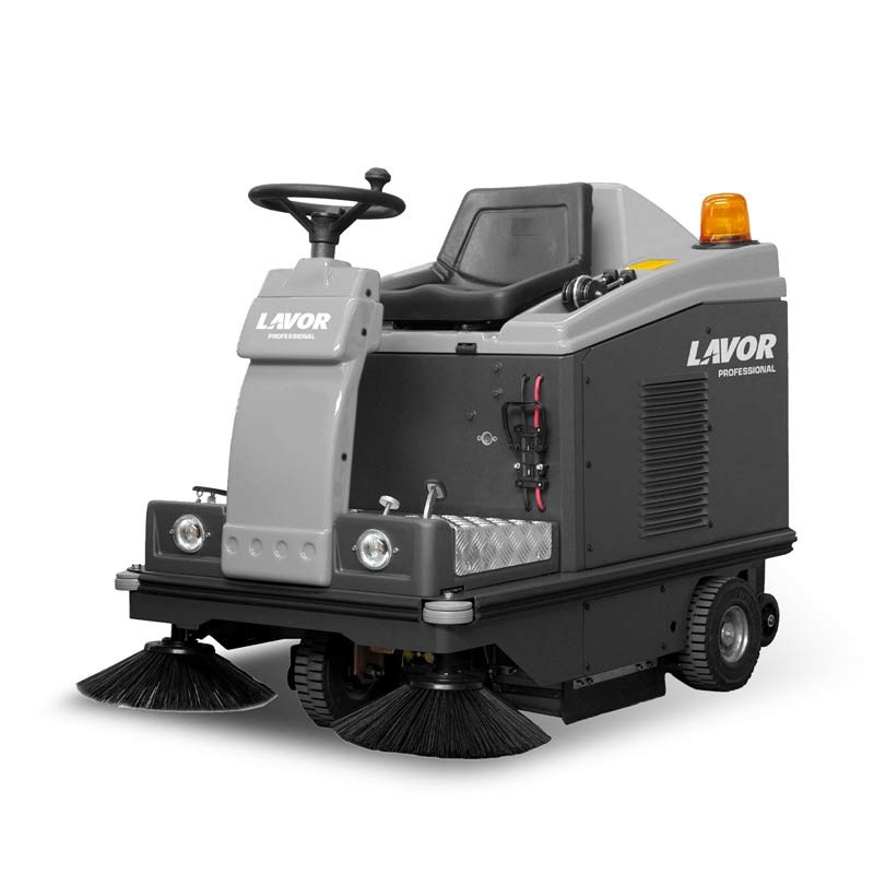 Les balayeuses Lavor SWL R 1000 ET et ST sont faciles à entretenir et peuvent, sur demande, être équipées d'une double brosse latérale et de feux avant .