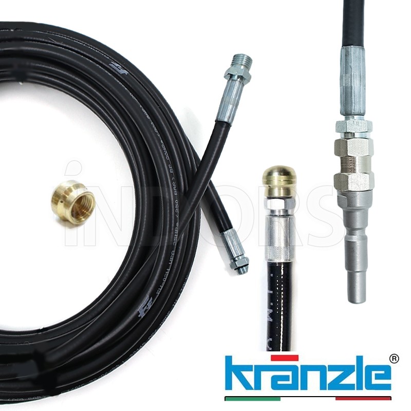La sonde est livrée complète avec un accessoire en laiton Kranzle d'origine et des buses de nettoyage de drain de votre choix. Le produit est entièrement fabriqué en Italie et est idéal pour nettoyer les tuyaux complexes avec de nombreux coudes : il est anti-pliage, résistant, flexible et de qualité artisanale italienne.