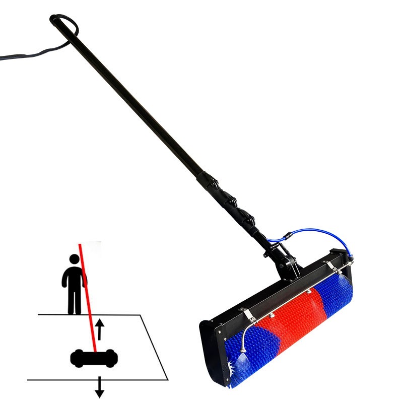 La tête à angle variable permet un contrôle précis de la pression et de l'adhérence à la surface, améliorant ainsi l'efficacité de la brosse rotative professionnelle sur les surfaces inclinées ou difficiles d'accès. De plus, le mouvement de rotation facilite les mouvements ascendants , réduisant l'effort de l'opérateur.