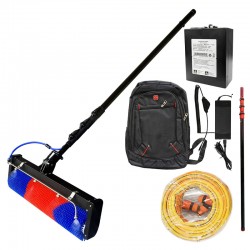 Cette brosse rotative est alimentée par une batterie au lithium de 24 V , intégrée à un sac à dos ergonomique offrant une autonomie de 5 à 6 heures . Le débit d'eau est contrôlé directement par la tête de nettoyage, assurant ainsi continuité et précision lors du lavage de panneaux photovoltaïques et de surfaces en verre ou en polycarbonate.