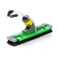La brosse est équipée d'une barre de rinçage , une barre spéciale dotée de micro-buses de rinçage, montée au-dessus de la brosse et qui délivre la juste quantité d'eau pure exactement là où c'est nécessaire pour un rinçage puissant de la surface préalablement nettoyée, rendant le nettoyage plus efficace que jamais. Grâce à sa taille, elle est idéale pour le nettoyage depuis une nacelle ou une plateforme élévatrice.
