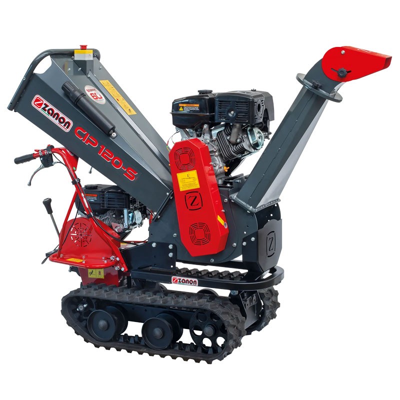 Le Zanon CIP 120-S Cingo est équipé d' une trémie auto-alimentée , d'une éjection pivotante à 360° , d'une benne basculante et d'une transmission à double courroie . Il est également équipé de freins de stationnement automatiques, d'un réglage automatique des chenilles, de protections CE et d'un bouton d'arrêt d'urgence pour travailler en toute sécurité. Extrêmement polyvalent et puissant, c'est la solution idéale pour les professionnels du secteur vert et les agriculteurs qui souhaitent réduire le volume de leurs déchets jusqu'à 5/6 fois .