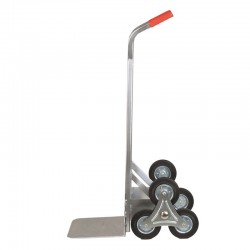 Les 6 roues en caoutchouc plein ont un diamètre de 150 mm et sont montées sur des plaques renforcées, idéales pour franchir des marches jusqu'à 16 cm de hauteur et avec une saillie jusqu'à 2 cm , permettant au chariot de monter sans toucher le bord saillant des marches et évitant ainsi toute rayure ou casse.