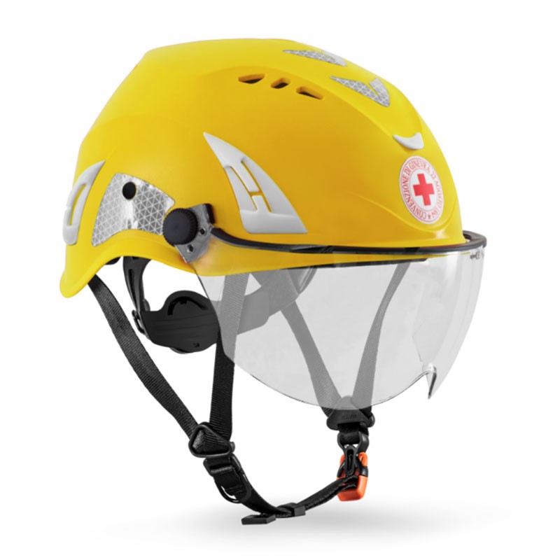 Kask Superplasma HP Visor WHE00107 est la version mise à jour du casque de protection de la Croix-Rouge entièrement Made in Italy , produit par l'entreprise leader dans la production de casques de sécurité au monde.