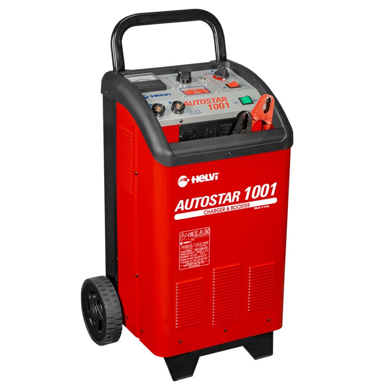 Le chargeur de batterie Helvi Autostar 1001 (réf. 99010038) est équipé d'un sélecteur de courant de charge , d' un ampèremètre , d'une protection thermostatique, d'un fusible interne contre les courts-circuits et les inversions de polarité . Le minuteur de charge est inclus.