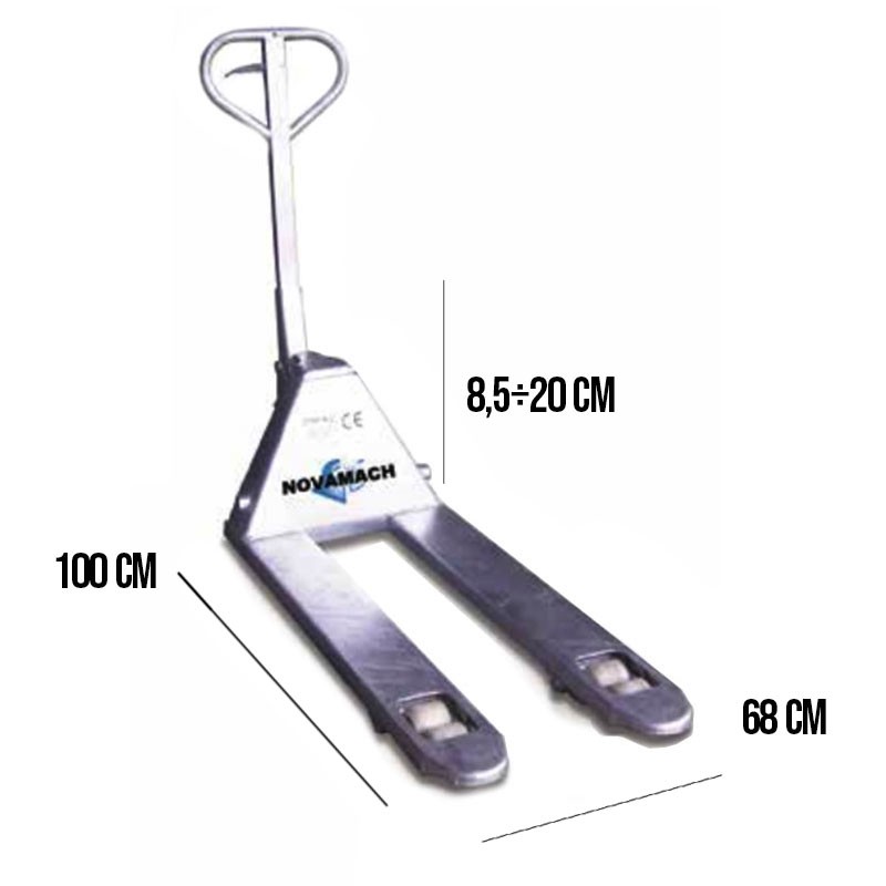 Les transpalettes en acier inoxydable Novamach garantissent une manutention sûre et stable de charges jusqu'à 2500 kg , avec une structure conçue pour les environnements industriels exigeants.