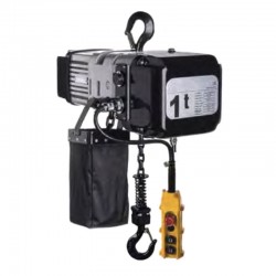 Fonctionnement en 400 V , capacité de levage de 500 à 2 000 kg . Vitesse de levage variable de 7,6 m/min à 0,85–5,3 m/min selon la capacité et le modèle. Diamètre de chaîne de 6,3 à 10 mm , nombre de brins de 1 à 2, poids du palan de 43 à 116 kg et poids de chaîne supplémentaire jusqu'à 3 kg/m. Consommation électrique de 0,9 kW à 3 kW. Structure robuste, compacte et stable pour un levage fiable.