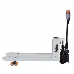 Le transpalette électrique Pramac Lifter EY20L , alimenté par batterie , a une capacité maximale de 2000 kg et des dimensions 1150 x 550 mm . Conçu pour un usage professionnel , il offre efficacité et simplicité d'utilisation grâce à sa structure compacte et ses commandes intuitives.