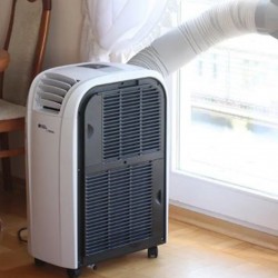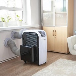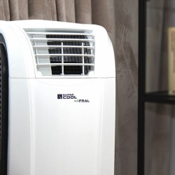 Le climatiseur Fral est facilement transportable d'une pièce à l'autre grâce à ses roulettes qui lui confèrent une grande agilité. Aucune installation n'est requise. Le tube de retour d'air peut être rangé sur le châssis Fral FSC14 lorsqu'il n'est pas utilisé et ainsi être facilement transporté.
