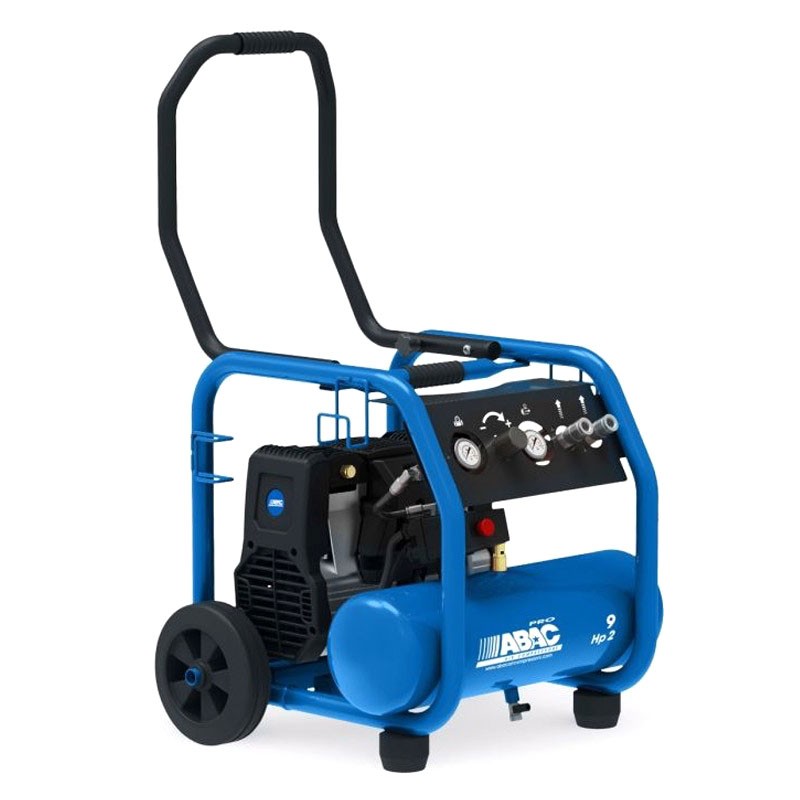 Ce compresseur à piston Abac est de configuration coaxiale. Pression max. 9 bars, moteur électrique 2 CV, débit d'air max. 230 l/min.