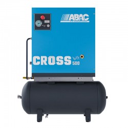 Le compresseur Abac Cross 500 est équipé d'un réservoir d'une capacité de 200 L et supporte un débit d'air réel de 498 L/min et une pression de service maximale de 10 bar.