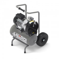 Le Nardi Extreme 1 25 L est un compresseur sur chariot équipé d'un réservoir de 25 L. Son débit d'air varie de 200 à 350 L/min selon le modèle. Il fonctionne sans huile.