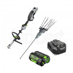Ce kit multi-outils EGO vous permet de réaliser divers travaux de jardinage avec un seul produit et plusieurs accessoires inclus dans l'achat avec la batterie, le chargeur rapide et le sac à dos de batterie.