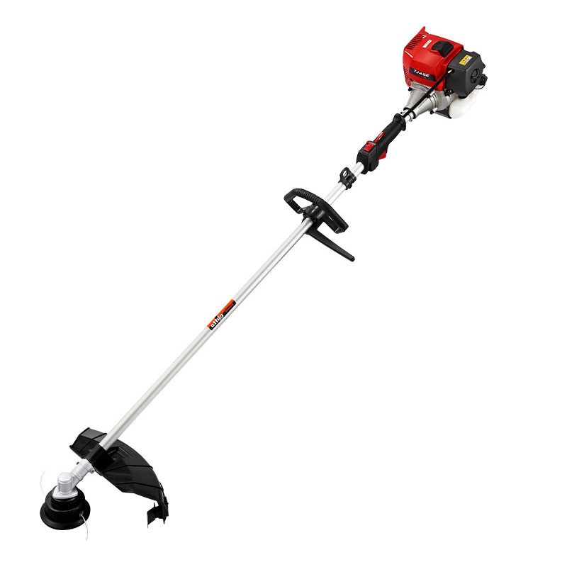 Débroussailleuse Attila ATJ 45-S avec arbre fixe en aluminium d'un diamètre de 28 mm , poignée unique avec barrière de sécurité et commandes intégrées .