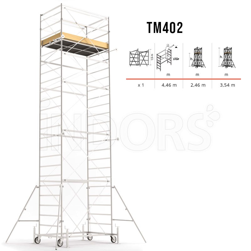 Tours Mobiles Gierre Ligne Gigantissimo avec possibilité d' ajouter une demi-travée de 0,9 m sélectionnable dans le menu déroulant. Cette gamme d' échafaudages Gierre Professional est la plus performante et se caractérise principalement par sa modularité , c'est-à-dire la possibilité d' ajouter jusqu'à 18 contremarches au module de base (TM402), portant ainsi la hauteur maximale de la plate-forme d'un minimum de 2,46 m à un maximum de 15,96 m (TM411).