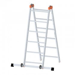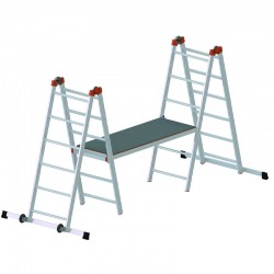 Le système de barres stabilisatrices anti-basculement et le kit de roues monté à 2 mm du sol garantissent une grande stabilité et une maniabilité optimale sur le lieu de travail. Les 8 tirants tubulaires rectangulaires de 34 x 22 mm , dont 2 sont équipés d'un dispositif de protection de l'utilisateur, contribuent à la sécurité générale. Conforme au décret législatif 81/08 en tant qu'échafaudage professionnel et à la norme EN 131-4 en tant qu'échelle professionnelle , ce produit assure une parfaite conformité avec la réglementation en vigueur pour une utilisation en milieu professionnel.