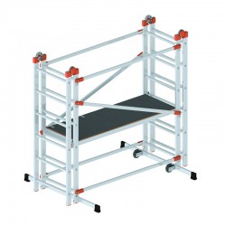 Une fois replié, cet échafaudage polyvalent est extrêmement compact , ce qui facilite son transport sur des véhicules utilitaires et son stockage en entrepôt. Son faible poids de 32,4 kg et ses dimensions optimisées permettent à un seul opérateur de le manipuler aisément, tout en conservant une grande rigidité structurelle.