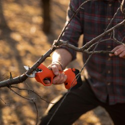 Le sécateur électrique rechargeable Stocker Magma E-35 TP 21 V (réf. 621) est fourni avec un chargeur et idéal pour les travaux de jardinage tels que la taille des petits arbustes, des arbres fruitiers, des plantes ornementales, des sarments de vigne, des rosiers, etc. Ce sécateur permet d'effectuer jusqu'à 2 000 coupes avec une seule charge et, grâce à sa poignée télescopique, d'atteindre même les branches les plus hautes.