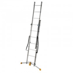 Une tige de fixation de sécurité est incluse pour ancrer solidement l'échelle et empêcher tout mouvement indésirable. Les pieds en caoutchouc antidérapants assurent un support stable et sûr sur différentes surfaces, la polyvalence de l'échelle permet de l'utiliser entièrement étendue contre le mur, en position échelle double ou lame, selon les besoins de l'utilisateur.