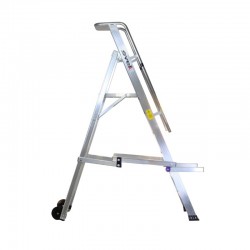 Équipé de 2 roues, de 2 accoudoirs rabattables, d'une grande plateforme en aluminium, d'un plateau porte-outils, de mains courantes et d'un garde-corps, il se caractérise par sa facilité d' ouverture et de fermeture en quelques secondes grâce à la présence de barres anti-ouverture accidentelle . Les marchepieds sont soudés à la structure en aluminium nervuré, obtenant ainsi un monolithe ultra-résistant.