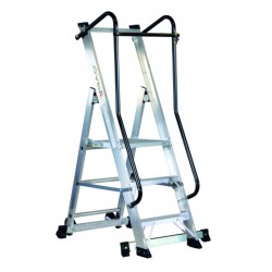 L'échelle professionnelle Svelt Moby est dotée de garde-corps de 80 cm sur les quatre côtés, de 2 roues d'un diamètre de 125 mm, de mains courantes peintes, d'une étagère de rangement, d'une plateforme renforcée de 43 x 44 cm et d'une barre de verrouillage de sécurité arrière pour un verrouillage stable et une utilisation en toute protection.