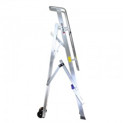 Équipé de 2 roues, de 2 accoudoirs rabattables, d'une grande plateforme en aluminium, d'un plateau porte-outils, de mains courantes et d'un garde-corps, il se caractérise par sa facilité d' ouverture et de fermeture en quelques secondes grâce à la présence de barres anti-ouverture accidentelle . Les marchepieds sont soudés à la structure en aluminium nervuré, obtenant ainsi un monolithe ultra-résistant.