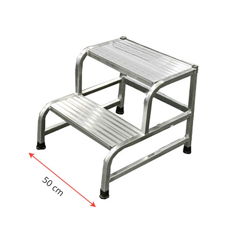 Realizzato in resistente alluminio estruso , questo sgabello è ideale per un utilizzo professionale e industriale. Dispone di due gradini , con un' altezza al piano di 0,48 m e un' altezza massima raggiungibile con la mano di 2,48 m . Con una rampa di larghezza a scelta tra 50 cm o 60 cm , è la scelta ideale per attività su macchinari in officina e per l'accesso a piani di carico.