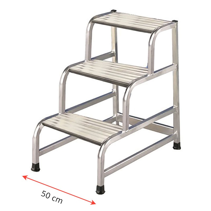 Fabriqué en aluminium extrudé robuste, ce marchepied est idéal pour un usage professionnel et industriel. Il est doté de trois marches , d'une hauteur de plateforme de 0,72 m et d'une hauteur maximale de 2,72 m . Avec une rampe d'accès de 50 cm ou 60 cm de large , il est parfaitement adapté aux travaux sur machines en atelier et à l'accès aux quais de chargement.