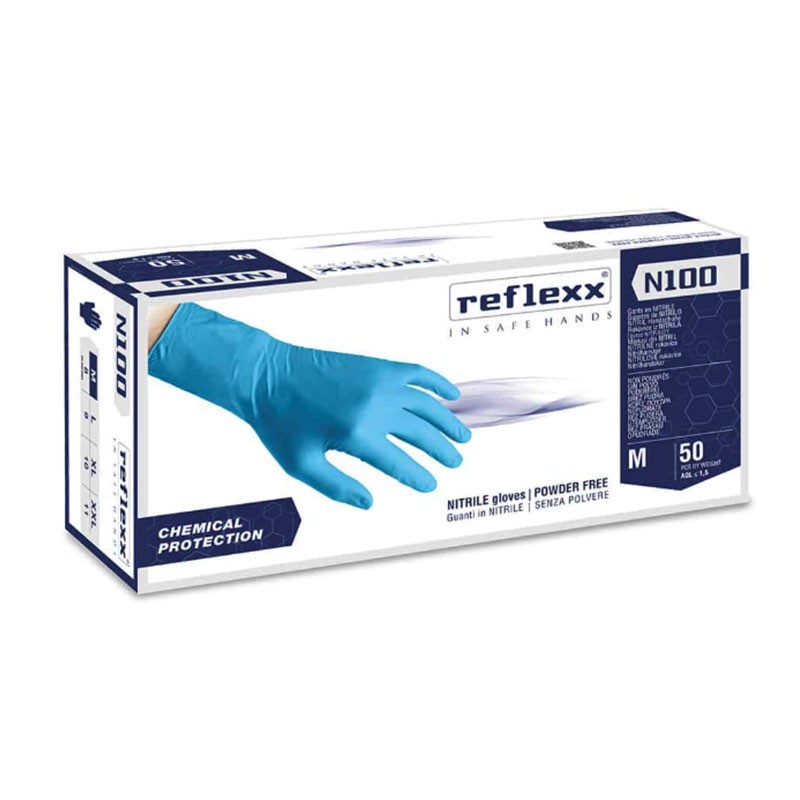 Gants jetables en nitrile Reflexx N100, 14 g (différentes tailles), conçus pour offrir une protection et une sécurité maximales dans les environnements professionnels à haut risque.
