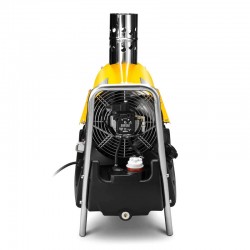 Tous les modèles de cette série sont montés sur roues pour faciliter au maximum leur transport. Le principe de fonctionnement de ces générateurs d'air chaud repose sur l'utilisation d'un compresseur rotatif qui, en acheminant de l'air comprimé vers la buse du brûleur, crée un vide permettant l'aspiration du combustible depuis le réservoir.