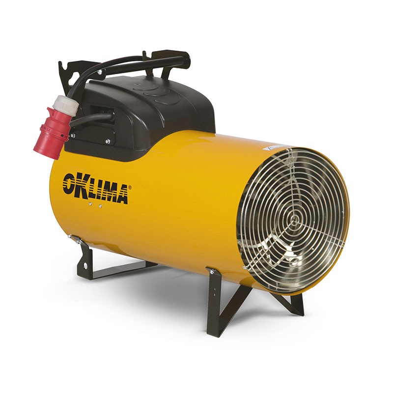 Le chauffage électrique industriel Oklima SK 88 C est un petit générateur d'air chaud électrique, alimenté par du courant triphasé de 400 V. En réalité, au lieu d'un brûleur, il utilise des résistances électriques pour chauffer l'air pulsé par le ventilateur.
