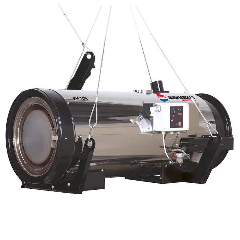 Biemmedue BH 100 est un générateur d'air chaud mural à combustion indirecte disponible en versions diesel, méthane ou GPL. Grâce à son débit d'air élevé de 8 500 m³/h, il est idéal pour une utilisation dans de grands environnements tels que des industries, des entrepôts ou des entrepôts.
