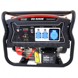 Ducar DG 9250 E est particulièrement silencieux , en effet il n'émet que 78 dB(A) à 7 mètres , il est également complet de testeur numérique et prise 12V . Le moteur-générateur Ducar DG 9250 E est doté d'un moteur Ducar avec allumage électronique , d'une puissance maximale de 6,5 kW et d'une puissance nominale de 6 kW , et dispose également d'une sortie en courant alternatif de 230 V 50 Hz 23,0 Ah .
