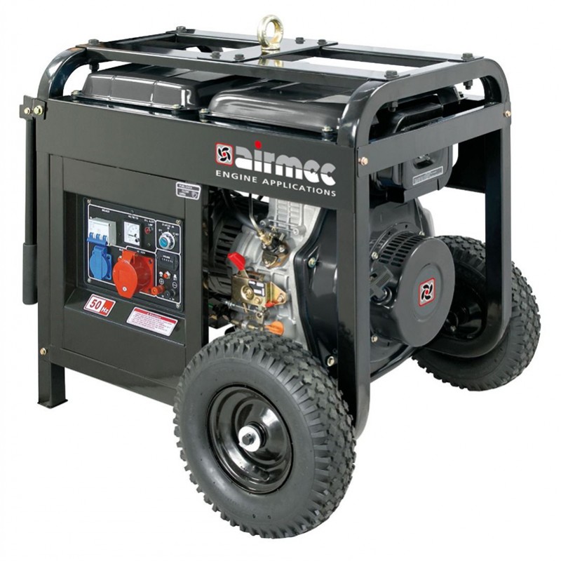 Airmec HS 6500-3E est un groupe électrogène monophasé/triphasé 230V/400V , équipé d'un moteur diesel bridé à un alternateur triphasé à 2 pôles , équipé d'un système de régulation à balais composé et d'un démarreur à rappel et d'un démarreur électrique à batterie. .