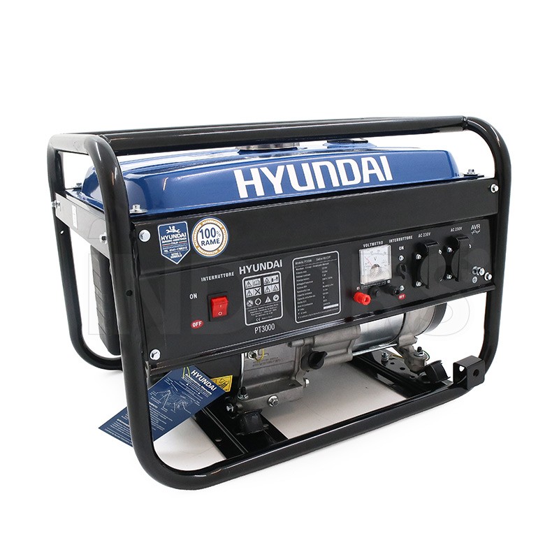 Hyundai PT-3000 65122 est également équipé d'une carte AVR capable de garantir une grande stabilité aux valeurs de tension et de fréquence de sortie quelle que soit la charge et la vitesse de rotation du moteur : cette machine est donc adaptée, si elle n'est pas soumise à des variations de charge importantes, également pour alimenter des équipements électroniques (ordinateurs, téléviseurs et instruments en général).