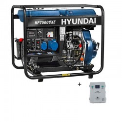 Ce générateur diesel d'une puissance maximale de 5,2 kW dispose d'un réservoir de carburant de 14 L. Avec une puissance de 12 CV et une cylindrée de 456 cc , le Hyundai 65221 est doté d'un démarrage électrique, avec une batterie de 30 A/h .