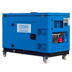 Groupe électrogène insonorisé CGM S12000 DUAL équipé d'un moteur diesel refroidi à l'eau CGM D16HP et d'un système de démarrage électrique avec batterie 12 V, clé et batterie .