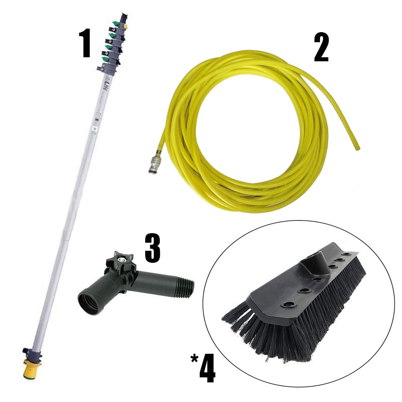 Kit de perche à eau complet comprenant une perche télescopique en aluminium UNGER nLite Connect de 6 m , un col de cygne et un tuyau d'eau haute pression.