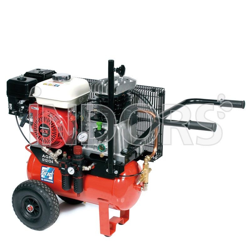 Compresseur essence Fiac Agri 515/24 avec moteur Honda 5,5 CV , pour toutes les utilisations où il n'est pas possible d'avoir une alimentation électrique. Conçus avec une voie large pour faciliter le transport, ils sont équipés de grandes roues en caoutchouc à boutons qui facilitent les déplacements sur sol irrégulier . La Fiac Agri 515/24 est équipée d' un détendeur / filtre , il est puissant , robuste , polyvalent , pratique et facile à manipuler .