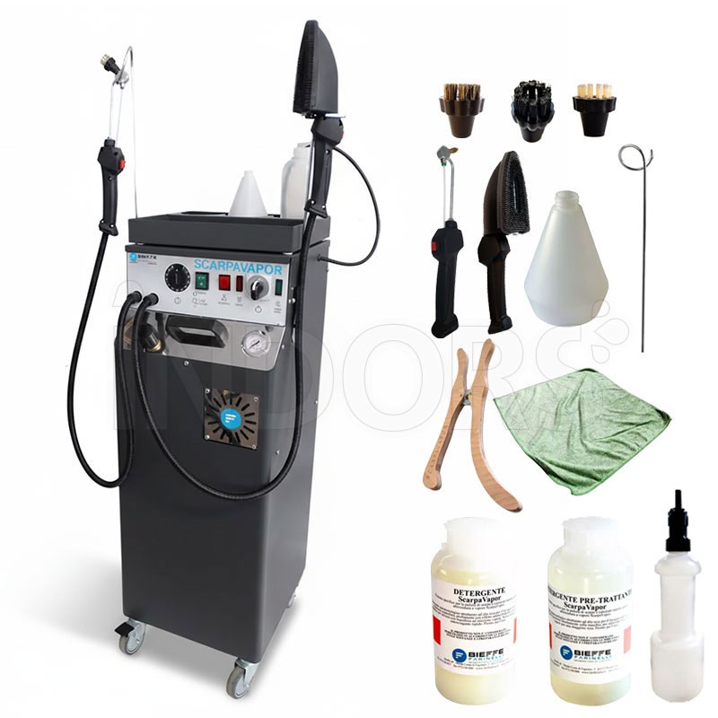 Le nettoyeur vapeur Bieffe Farinelli Scarpavapor BF425S est un générateur de vapeur professionnel conçu pour le nettoyage et la désinfection en profondeur des chaussures, sacs, accessoires et articles similaires dans des environnements spécialisés tels que les ateliers, les magasins, les cordonneries et les centres de maintenance. Cette machine industrielle combine vapeur et détergent pour éliminer même les saletés les plus tenaces et garantir des résultats impeccables sur les surfaces intérieures et extérieures.