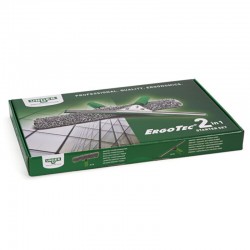 Ce kit comprend une laveuse électrique ErgoTec et une raclette en caoutchouc verte ErgoTec .