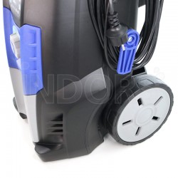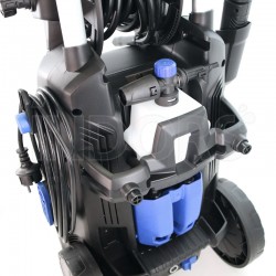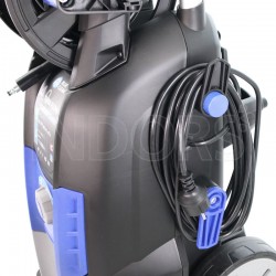 Ce nettoyeur haute pression monophasé est léger et compact. Il est équipé de roulettes de transport , d'une poignée télescopique pratique, d'un support de lance et d'un compartiment de rangement pratique pour les buses. Le mode de lavage se change rapidement grâce au sélecteur situé au centre de l'appareil. Un enrouleur de tuyau intégré pratique permet d'enrouler le tuyau haute pression de 8 mètres . L'appareil est fourni avec de nombreux accessoires, notamment des buses et un kit mousse pour l'utilisation de détergent.