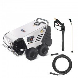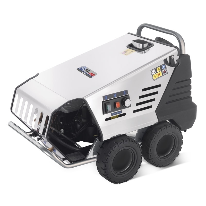Chaudière en acier inoxydable (AISI 430) , avec une élévation de température Δt jusqu'à 60 °C . Réservoir de gasoil de 24 L. Le nettoyeur haute pression peut atteindre une température de sortie d'eau de 100 °C .