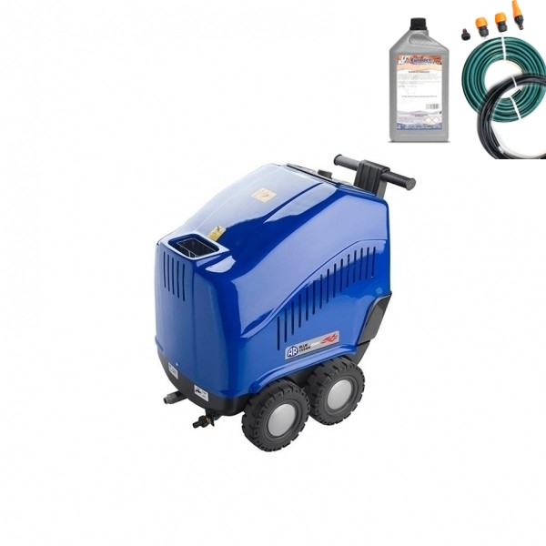 Le nettoyeur haute pression AR 5850 peut fournir de l'eau chaude jusqu'à 150 °C grâce à sa chaudière verticale en acier inoxydable . Alimentée au diesel, elle utilise un système de refroidissement par brûleur spiralé alimenté par un moteur électrique indépendant. Elle est dotée d'un double serpentin et d'une base en béton réfractaire . La température élevée de l'eau est idéale pour éliminer les saletés tenaces et les incrustations.